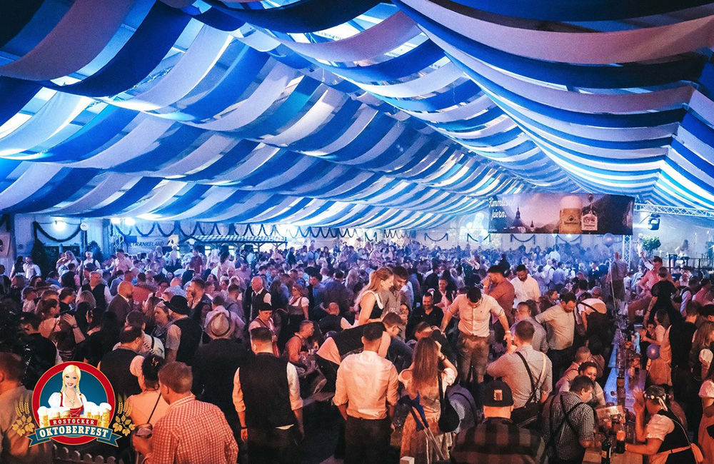 We are celebrating the „Rostock Oktoberfest“ in a spacious marquee in the Rostock city harbour, Haedgehafen 8.